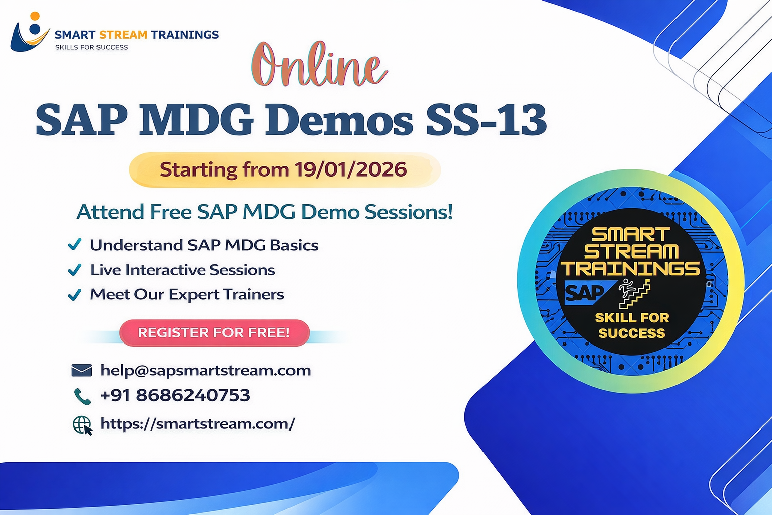 SAP MDG FUNCTIONAL, SAP MDG TECHNICAL, SAP ABAP, SAP EWM, SAP UI5, ODATA and FIORI.